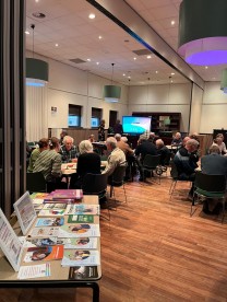 Woensdagmiddag 3 december stond het Parkinson Café Deventer in het teken van het boek ‘Ommetjes door het Parkinsonbrein’, een zelfhulpboek voor en door mensen met Parkinson en hun naasten. In de Hof van Salland in Diepenveen kwamen bijna 50 gasten en zorgverleners bijeen. De gasten vormden gespreksgroepen met Parkinson en aparte groepen zonder Parkinson. Na een introductie kwamen twee onderwerpen aan de orde: ‘vergeetachtigheid’ en ‘concentreren’. Aan de hand van gesprekskaarten werden de verschillende voorbeelden en oplossingen besproken. Een zinvolle bijeenkomst in een gemoedelijke sfeer. Het café begint zijn plekje te veroveren in de verschillende agenda’s (om het niet te vergeten). Iedere eerste woensdag van de maand komen we bij elkaar, de volgende bijeenkomst is op woensdag 7 januari 2026.