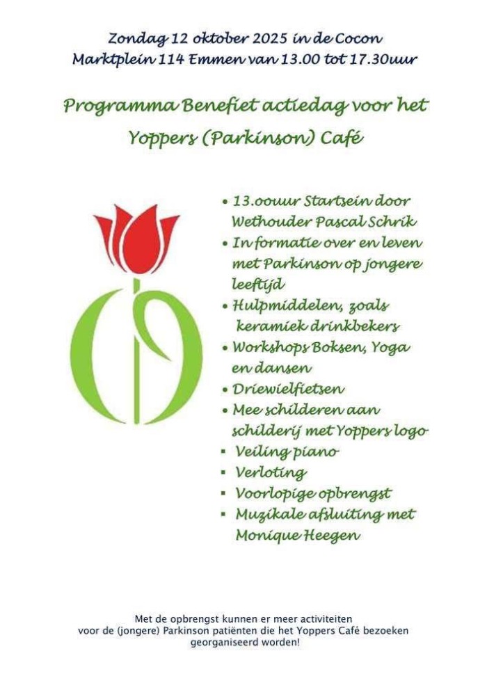 Georganiseert door de vrijwilligers van de Cocon om Parkinson onder de aandacht te brengen en gelden in te zamelen voor onze Yoppers groep Emmen?