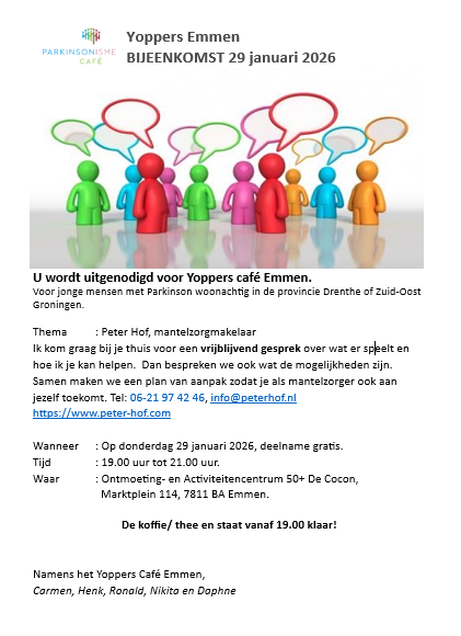 Voor jonge mensen met Parkinson woonachtig in de provincie Drenthe of Zuid-Oost Groningen.