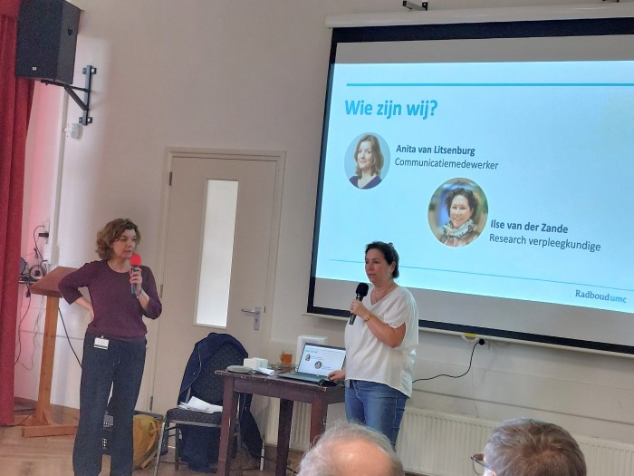 Vandaag waren Anita van Listenburg (communicatie medewerker) en Ilse van der Zande (Research verpleegkundige) van het Radboud UMC Nijmegen aanwezig om het een en ander uit te leggen over de lopende onderzoeken. Het is een samenwerking met Parkinson op maat, Team onderzoek en innovatie, Zorg en ParkinsonNet waaruit het Expertisecentrum voor Parkinson en Bewegingsstoornis om te onderzoeken hoe Parkinson ontstaat.