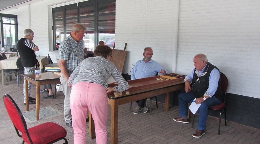 donderdag 13 juli 2017 09:01 Alweer de laatste bijeenkomst voor de vakantie. Bezoekers konden in groepjes een parcour van 12 oudhollandse spelen uitproberen.