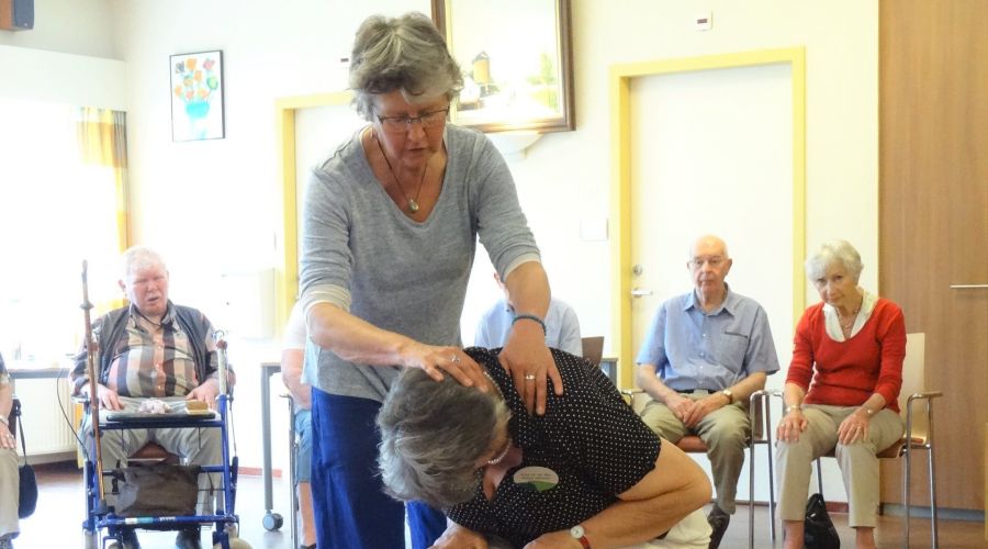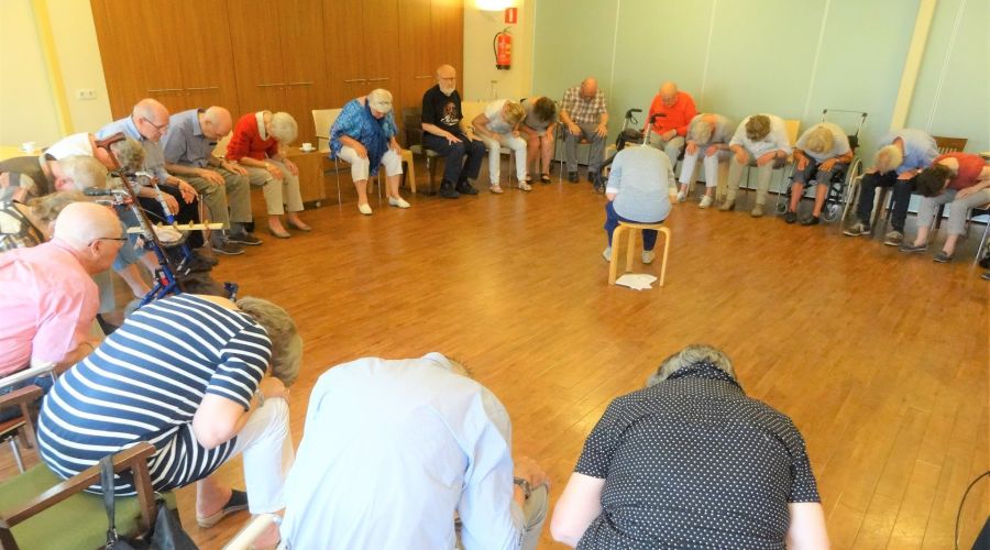 Het was een heerlijk ontspannen middag onder deskundige leiding van Christel. Zij vond het zelf een fijne middag in een erg goede sfeer en goed georganiseerd en verzorgd. Ook van deelnemers kregen we enthousiaste reacties over de rustige professionele manier waarop Christel ons allemaal, zittend en zo mogelijk staand eenvoudige oefeningen liet doen die als erg prettig werden ervaren.
