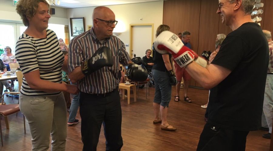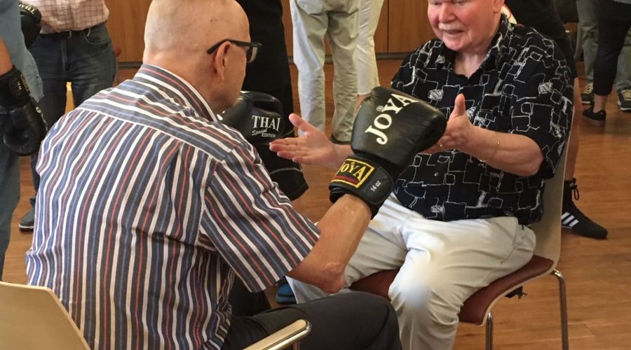 Eerst stond Sparking Boxing op het programma. Alex Hoogveldt gaf uitleg over deze zachtaardige (non-contact) boks methode voor mensen met de ziekte van Parkinson om coördinatie van ogen, handen en voeten te trainen. Onder leiding van coach Rob Floris konden de bezoekers zelf de bokshandschoenen aantrekken. Het aangaan van een werkelijk gevecht met elkaar is niet de bedoeling. Alle andere aspecten van het boksen komen wel aan bod.