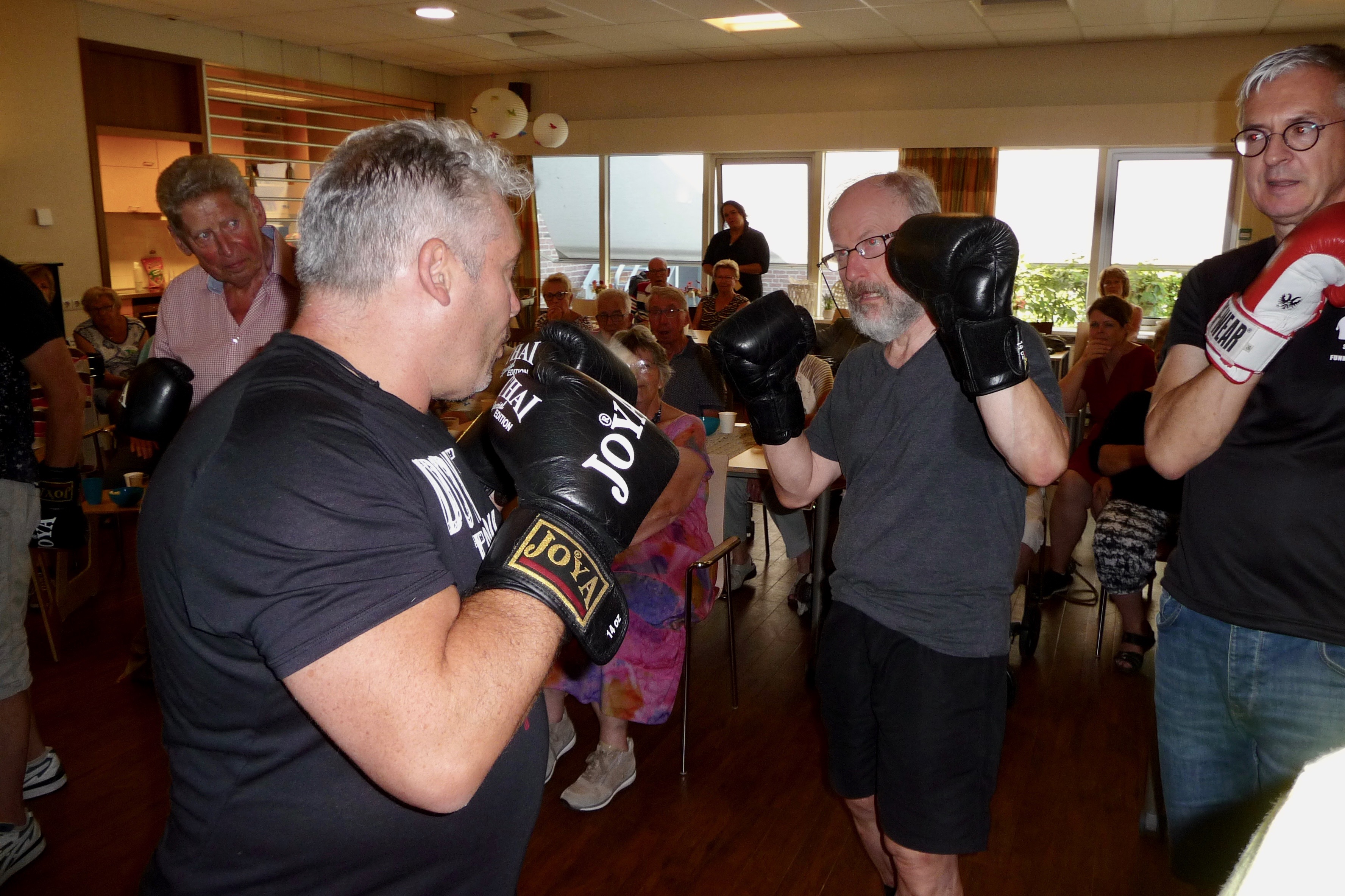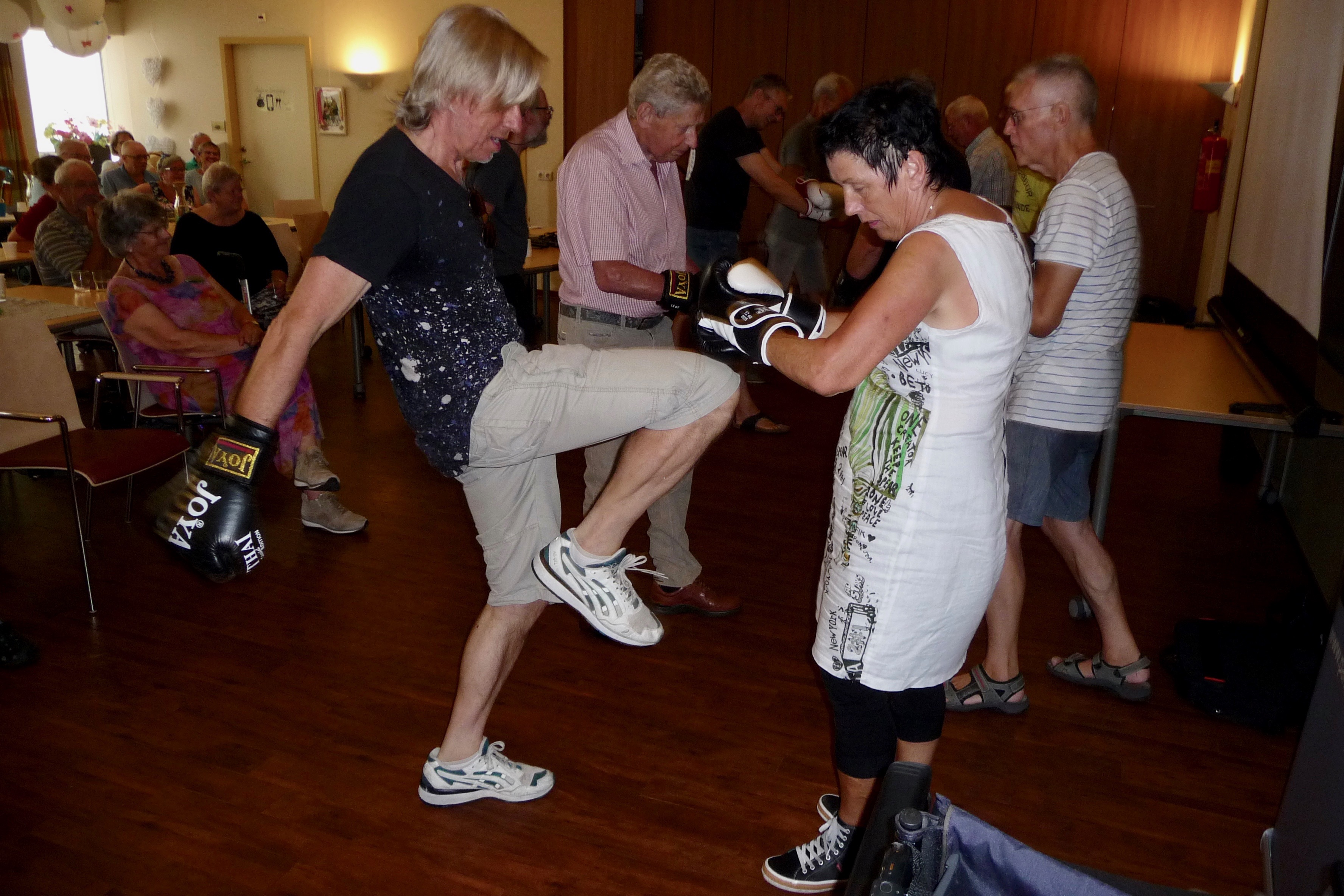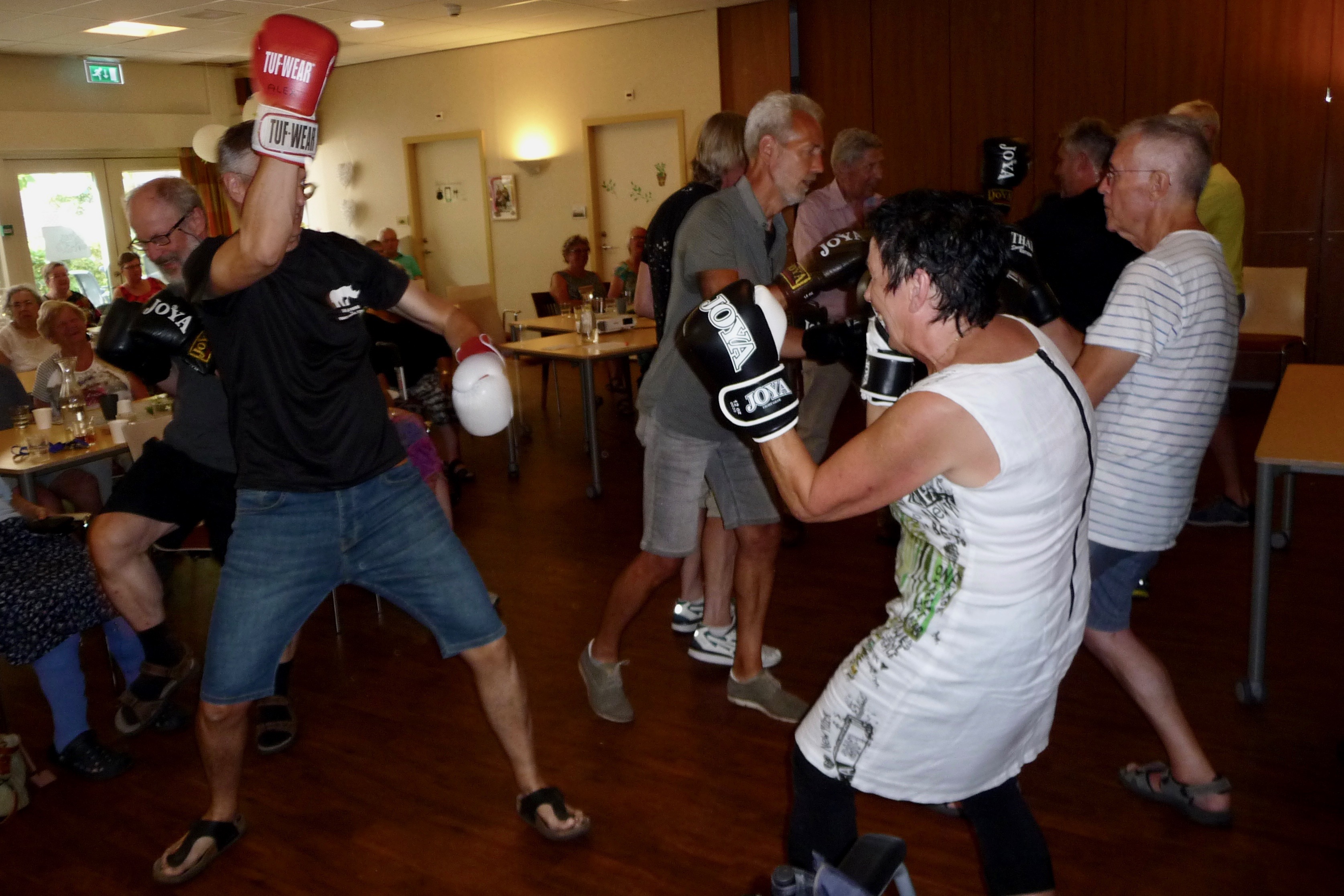 De deelnemers kregen er blijkbaar niet genoeg van en bezweet maar tevreden zocht een ieder zijn stoel weer op. Ook hierbij kunnen enthousiastelingen zich aanmelden bij een vaste groep boxers in Zevenaar.