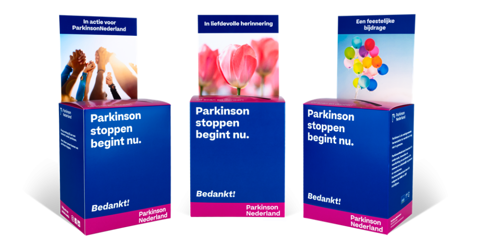 De donatiebox is eenvoudig aan te vragen via een formulier op de website van ParkinsonNederland en wordt gratis naar u toegestuurd. U zet de box makkelijk in elkaar en plaatst hem op een zichtbare plek.