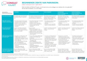 Mocht u problemen ervaren met de levering van deze laatstgenoemde pillen, meld dit dan bij de Parkinson Vereniging: info@parkinson-vereniging.nl. | | | | | | Vraagbaak 'Parkinson op Maat' over DBS Er zijn weer nieuwe video's toegevoegd aan de Parkinson Vraagbaak van Parkinson op Maat. Ditmaal is het thema Deep Brain Stimulation (DBS); een van de geavanceerde therapieën voor mensen met de ziekte van Parkinson. In zeven korte filmpjes geeft neuroloog Rianne Esselink van Radboudumc antwoord op vragen over deze behandeling. | | | | | | Oproep voor onderzoek Tijdens het tweede jaar van hun opleiding tot arts krijgen de studenten een onderwijs onderdeel dat het Patiënten VolgProgramma (PVP) wordt genoemd. Tijdens dit PVP onderdeel is het de bedoeling om de studenten te leren wat het betekent om chronisch ziek te zijn. | | | | | | Wat vindt u van de consultkaart? In het voorjaar is de consultkaart beginnende ziekte van parkinson gelanceerd. Dit is een hulpmiddel voor het kiezen van medicatie wanneer u nog niet zo lang de diagnose parkinson heeft. Heeft u deze consultkaart gebruikt? Dan zijn wij erg benieuwd naar uw ervaring! We zouden het heel fijn vinden wanneer u deze ervaring met ons wilt delen door een e-mail te sturen naar onderzoek@parkinson-vereniging.nl. | | | | | | Meld u aan voor de workshop 'Parkinson en werk' Heeft u parkinson(isme) en wilt u graag zo lang mogelijk met voldoening blijven werken in loondienst? De projectgroep Parkinson en Werk heeft naast informatiemateriaal, ook een workshop ontwikkeld, waarbij u meer informatie krijgt op vragen over Parkinson en Werk.