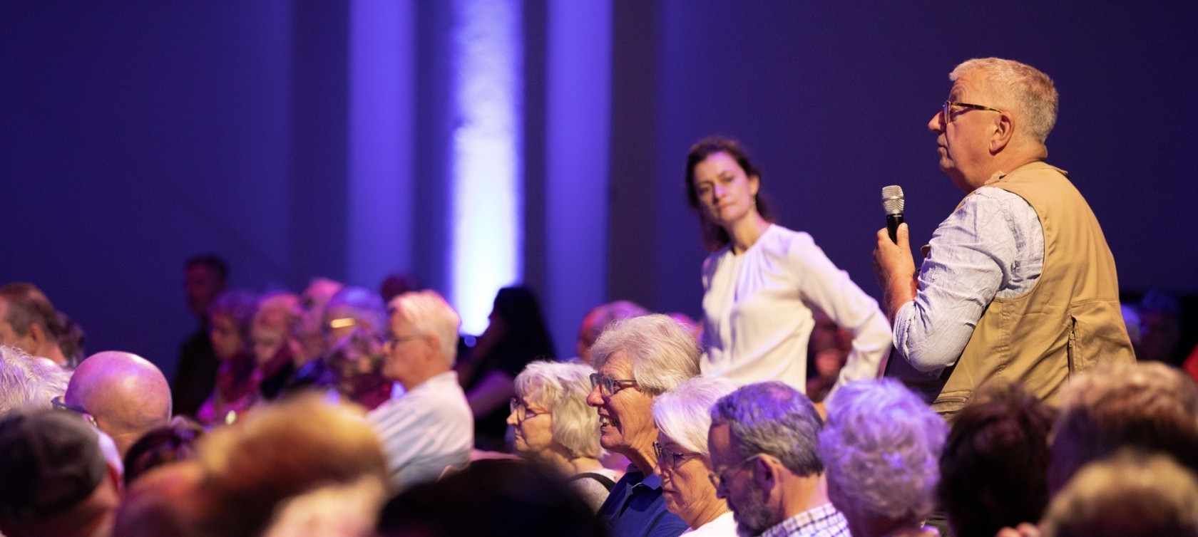 Naarnaast hebben we een groep sprekers. Dit zijn getrainde vrijwilligers die bij opleidingen of organisaties kunnen vertellen over hun eigen ervaringen met leven met de ziekte van Parkinson.