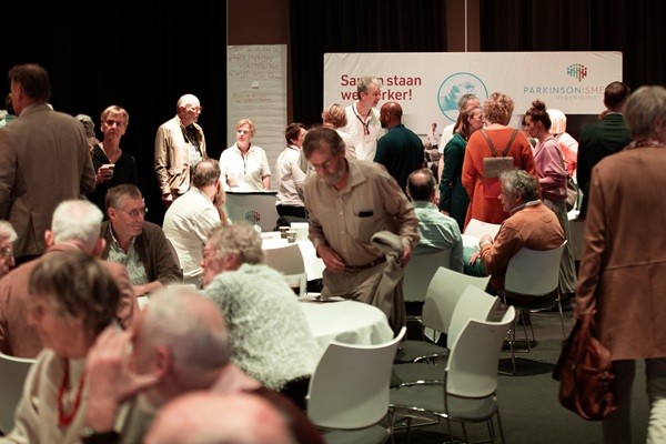 De stand wordt bemenst door vrijwilligers, vaak mensen met eigen ervaring met parkinson. Zij bouwen de stand op en weer af, en vertellen je graag over de ziekte van Parkinson, parkinsonismen en over het werk van de Parkinson Vereniging.