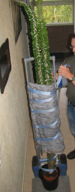 Aan het eind liepen we ook langs de plant die mijn man en ik in februari 2014 aan de hortus schonken. Een buurvrouw had hem ooit op een markt gekocht, en na haar overlijden mocht Dries er voor zorgen. Dries en ik liepen er later nog een paar keer langs, Dries was steeds weer teleurgesteld dat de plant nog niet in een grotere pot was gezet.